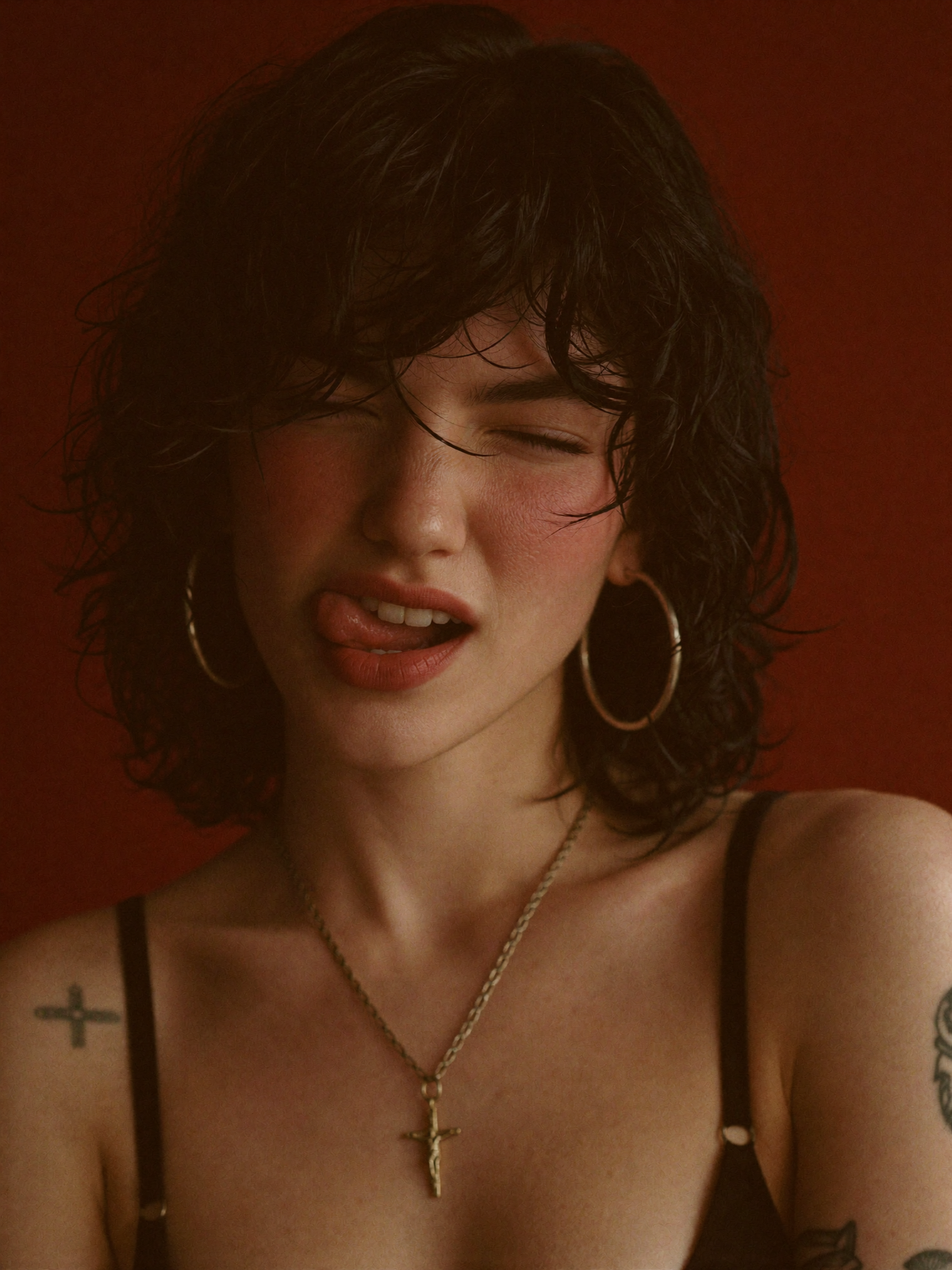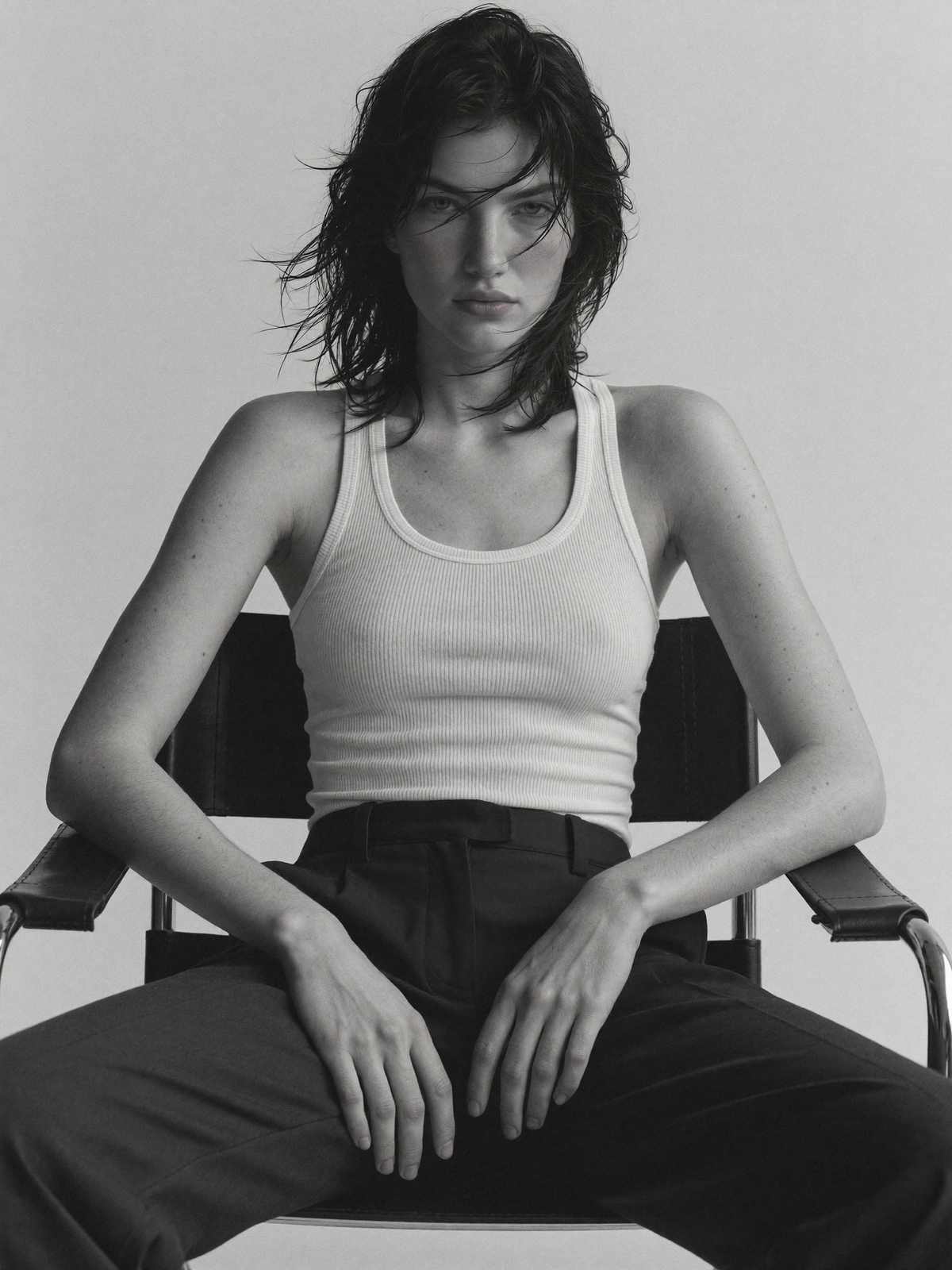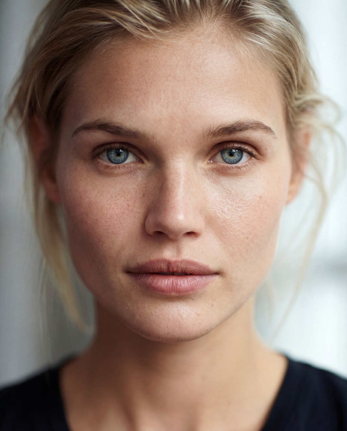 Ретушируем светотеневой рисунок, не нарушая анатомию. Убираем красные уши, приводим в баланс оттенок кожи на лице и руках, пальцах рук, шее, ключицах. Оттенок макияжа приводим к естественному оттенку кожи. -